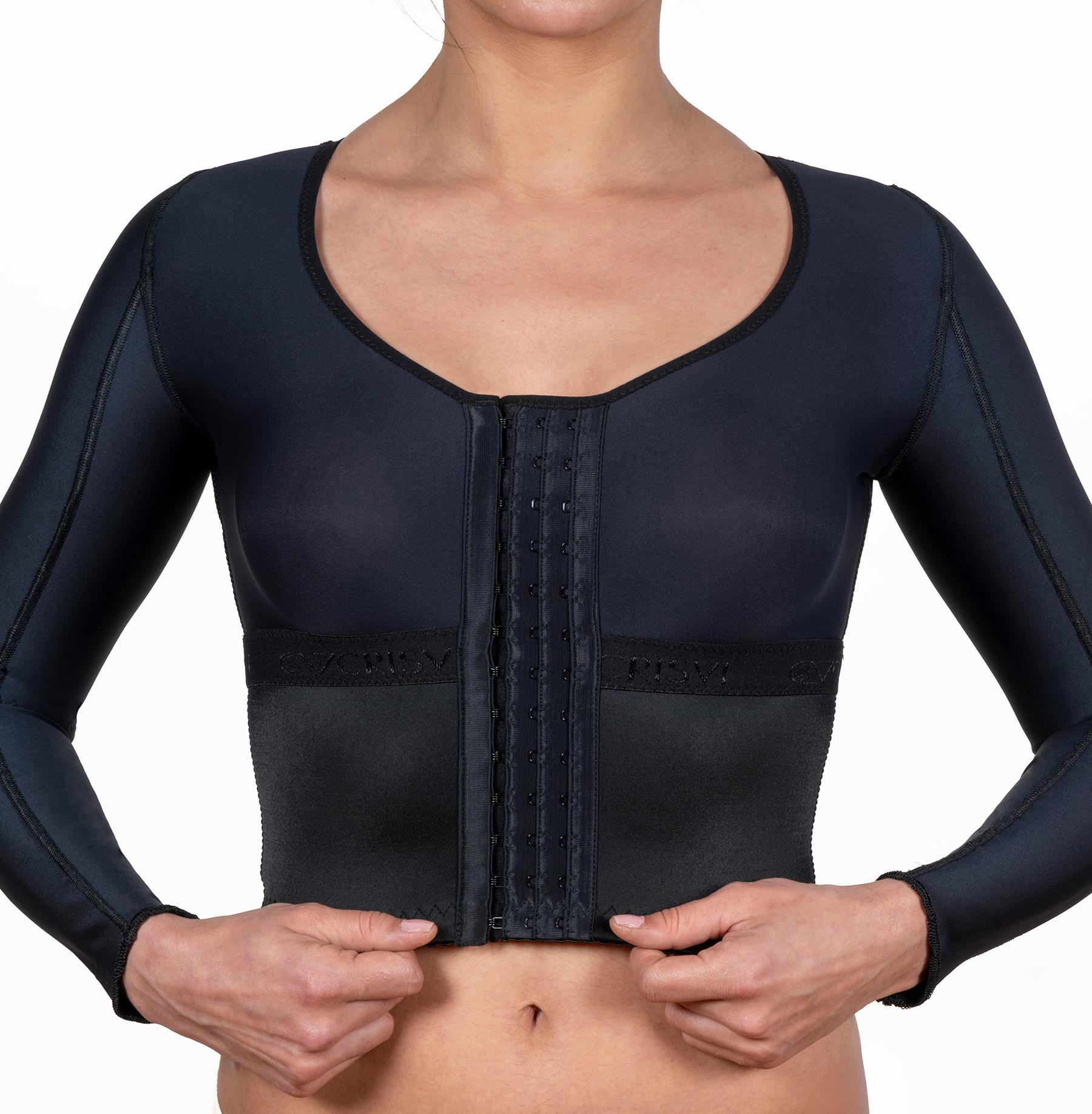 Costuras laterales en los brazos. Manga de microfibra con refuerzo de lycra en la zona intervenida.
